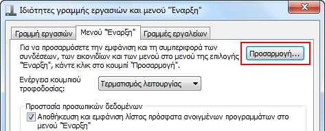 2. Μεταφερθείτε στην καρτέλα Μενού “Έναρξη” (Start Menu) και πατήστε στην επιλογή Προσαρμογή (Customize),