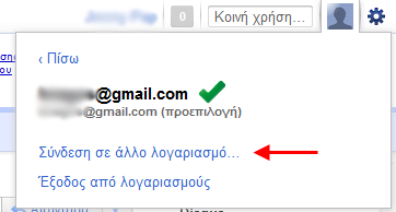 Αφού συνδεθείτε, μπορείτε να χρησιμοποιείτε ταυτόχρονα τους λογαριασμούς σας. Για να συνδεθείτε ή να μεταφερθείτε σε ένα άλλο λογαριασμό, πατήστε στο όνομα/e-mail πάνω δεξιά και επιλέξτε από το μενού την ενέργεια σας.