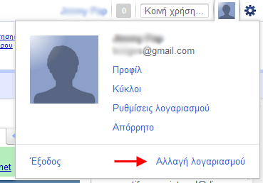 Κάντε κλικ στο όνομα/e-mail που εμφανίζεται πάνω δεξιά και πατήστε στην επιλογή Αλλαγή λογαριασμού[/do] (Switch account) από το μενού που θα εμφανιστεί.